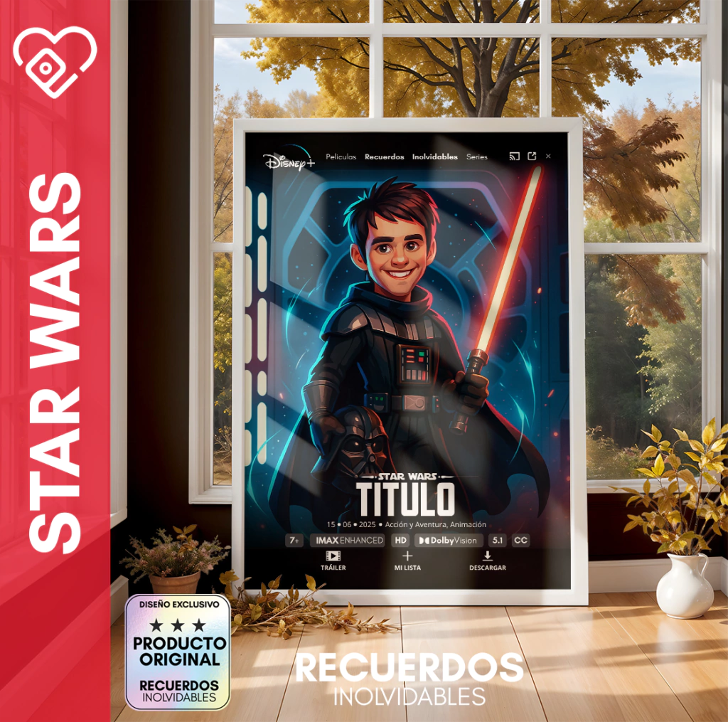 En Recuerdos Inolvidables transformamos tu imagen en una versión animada e imponente al estilo de Darth Vader.